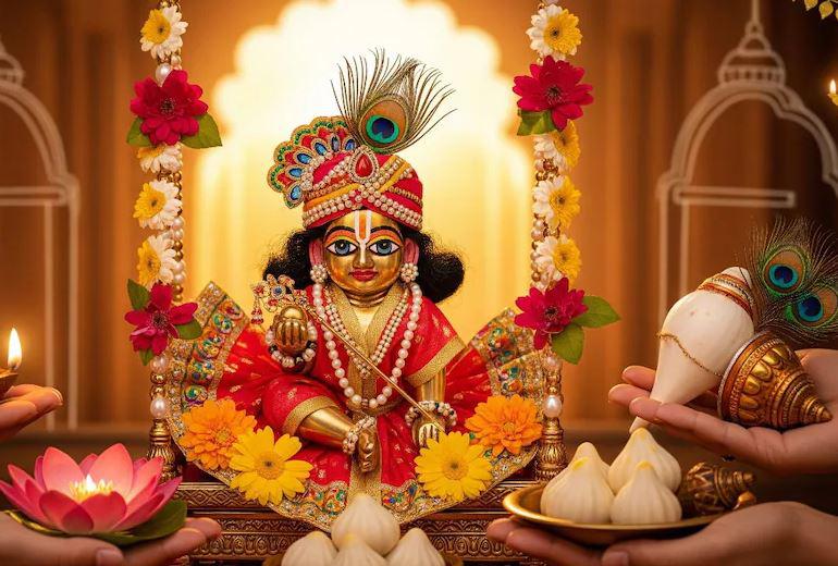 Krishna, who is also lovingly called Govinda, Balgopal, Jagadguru, Manmohan, Murlimanohar,Maakhan Chor 's Janmashtami takes place on ashtami tithi of krishna paksha of the month of Shravan or Bhadrapad (August or September). The next day is celebrated as Nanda Utsav, when Krishna’s parents Nanda and Yasoda had celebrated by distributing sweets to people. After fasting until midnight, people break their fast and distribute sweets as part of the Nanda Utsav.