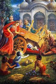 In Hindu tradition, Krishna is said to have taken an oil bath (Abhyanga Snana) immediately after slaying the demon Narakasura to cleanse himself of the blood and grime of battle, symbolizing purification and the triumph of dharma over adharma; this act is re-enacted as the early-morning oil bath on Naraka Chaturdashi/Choti Diwali in many parts of India.