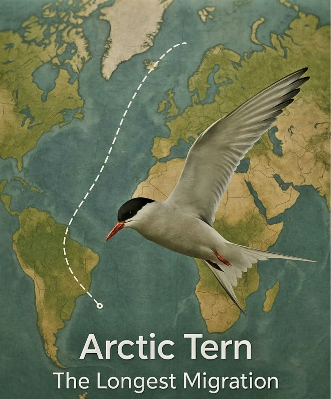 The Arctic Tern (Sterna paradisaeais) is a small, gray-and-white social bird, breeding on the ground and can live for decades. White with a black cap, it's a largely coastal, water-loving bird that h…